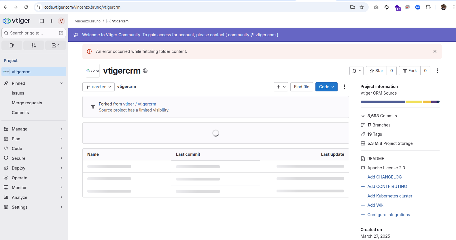 [Vtigercrm-developers] Gitlab seems broken